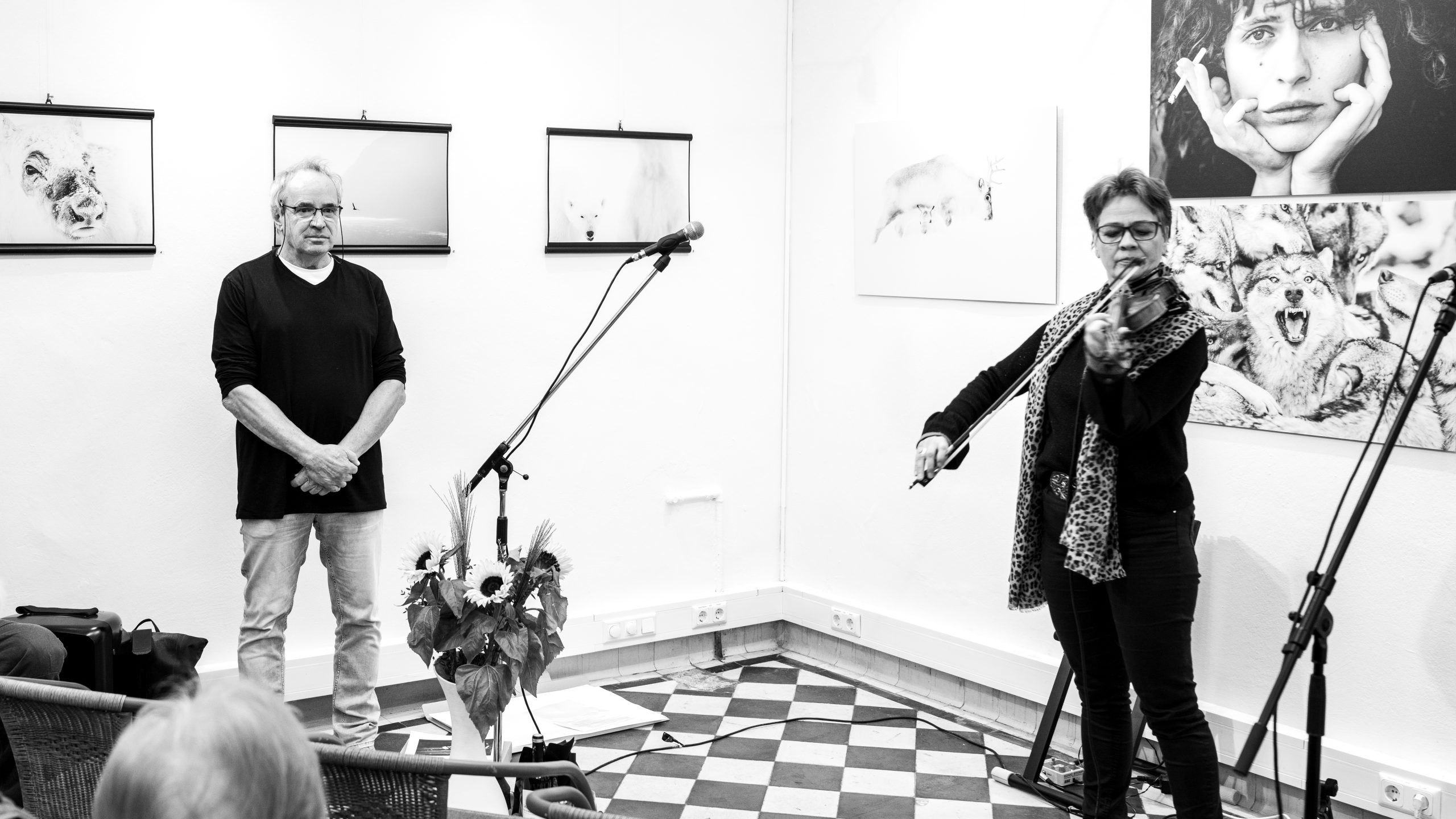 aufregende tage und wunderbare stunden liegen hinter mir. ich muss das erlebte erst noch in meiner gefühlswelt ordnen und sacken lassen. was für ein „besonderes“ erlebnis. von den ca. 120 teilnehmern dieser feier waren die allermeisten freunde und mir nahe stehende menschen. sie kamen aus allen ecken deutschlands und natürlich auch aus göttingen. diese menschen waren es, die die einmaligen räume der galerie mit freundlichkeit, wärme, ja, mit liebe gefüllt haben. dazu die großartige musikalische begleitung durch dimut und uwe. das ganze eingerahmt von meinen bildern und meinen einführenden worten.