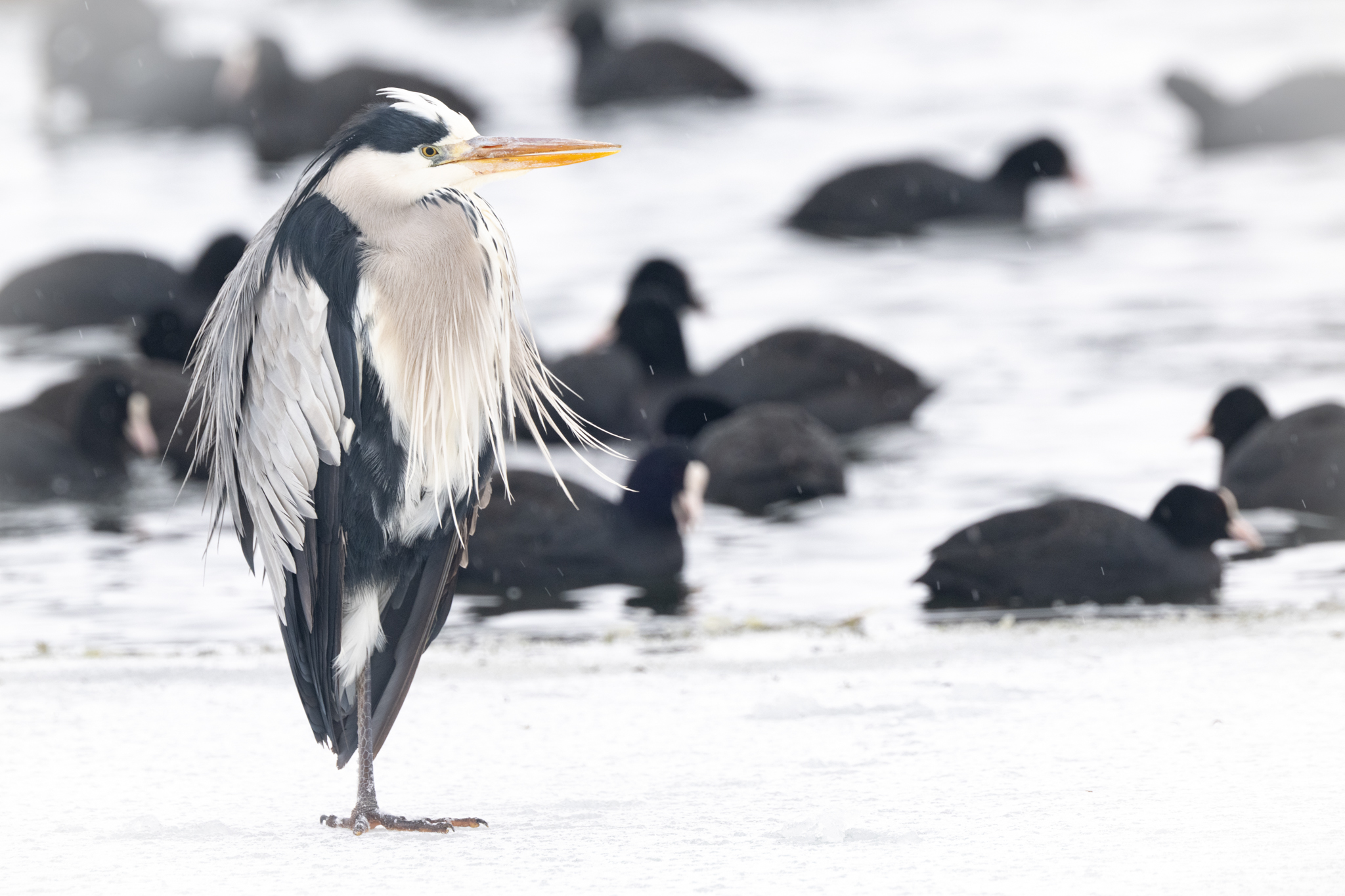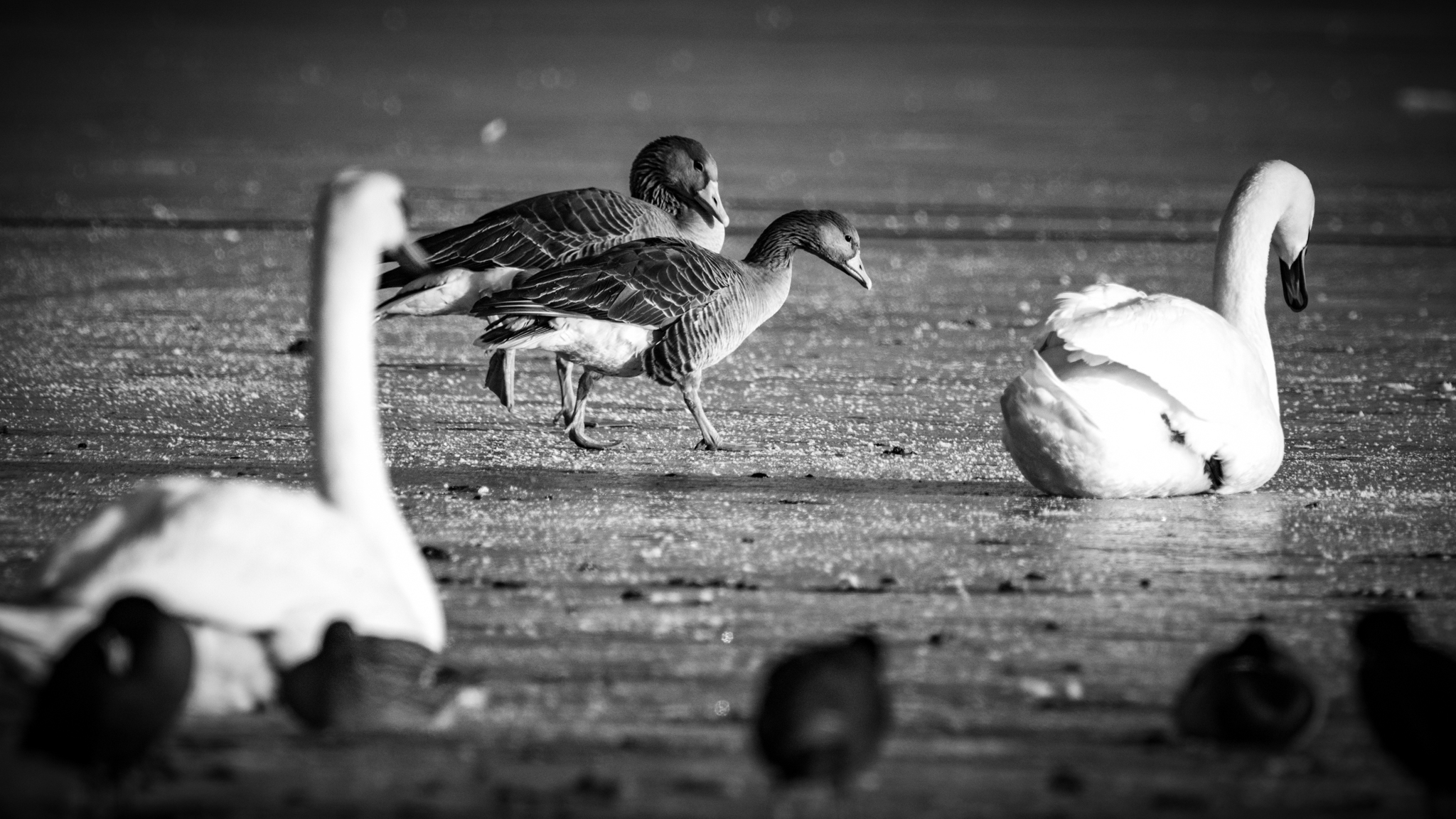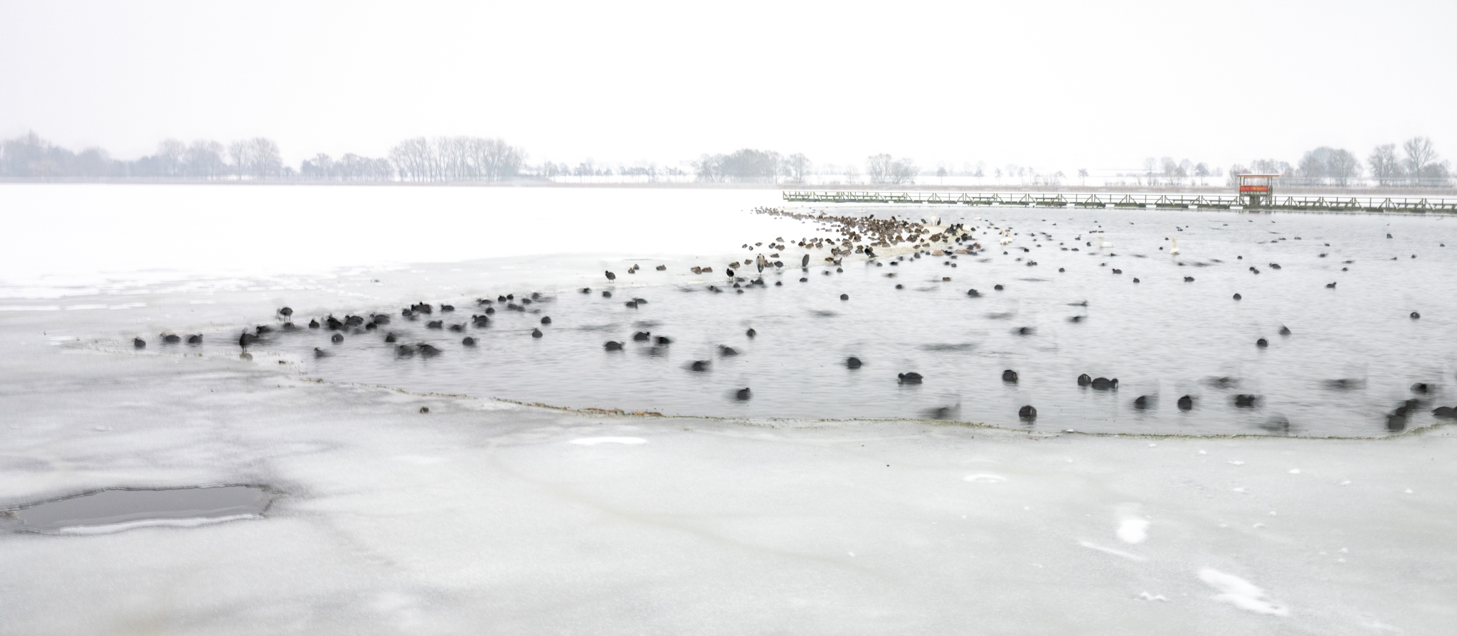 an drei tagen war ich früh morgens an meinem lieblingssee. wie jedes jahr gibt es auf dem zugefrorenen see eine eisfreie stelle. hier sammeln sich alle gefiederten freunde zum ruhen, gefiederpflege, fischen usw.